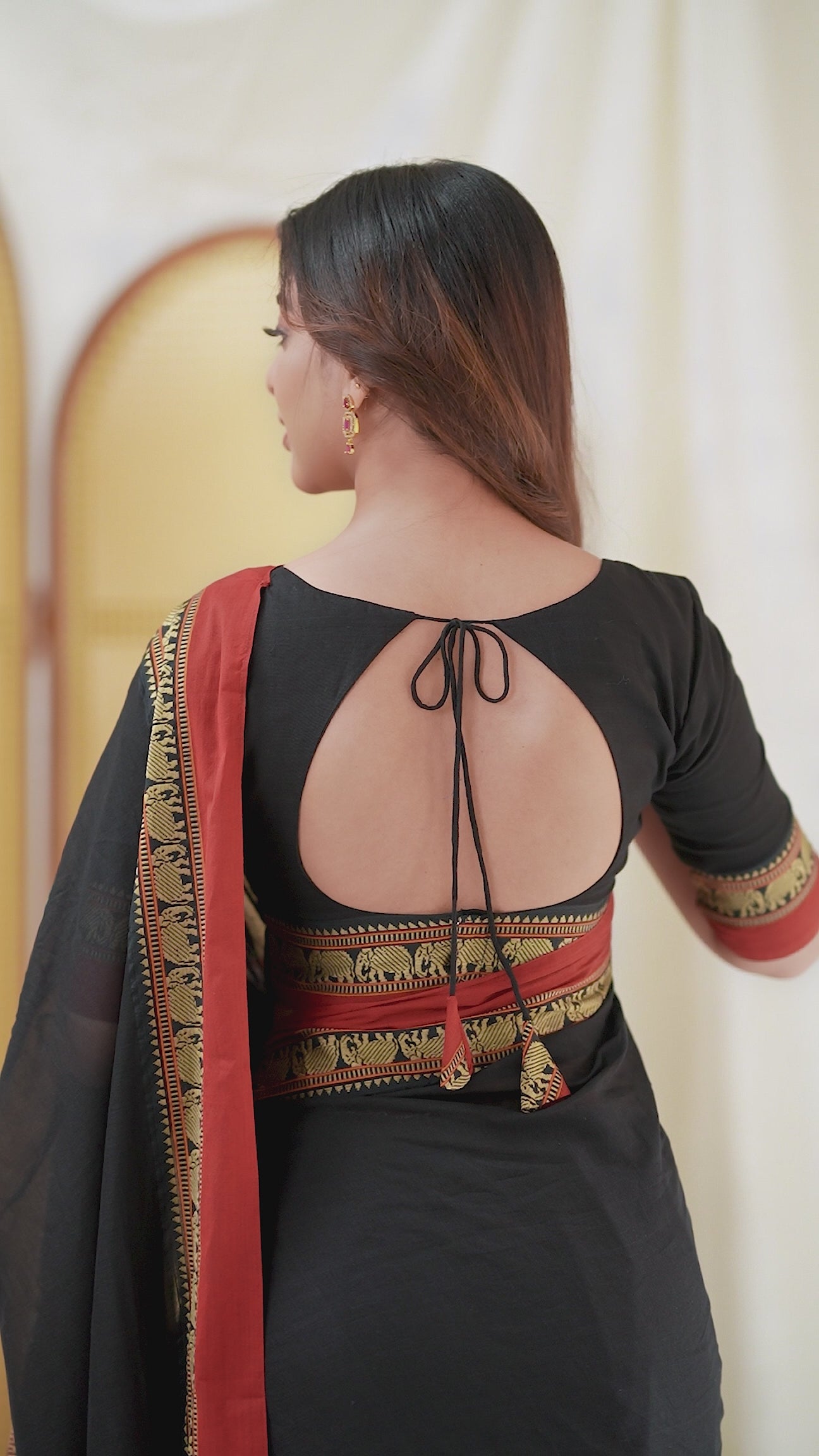 Narayanpet Handloom Saree, crafted in fine cotton and enhanced with a lustrous mercerized finish. Woven by skilled artisans of Narayanpet, this saree reflects a legacy of tradition blended with modern refinement.