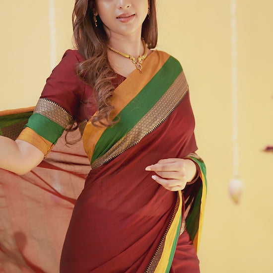 Marron Narayanpet Cotton Saree