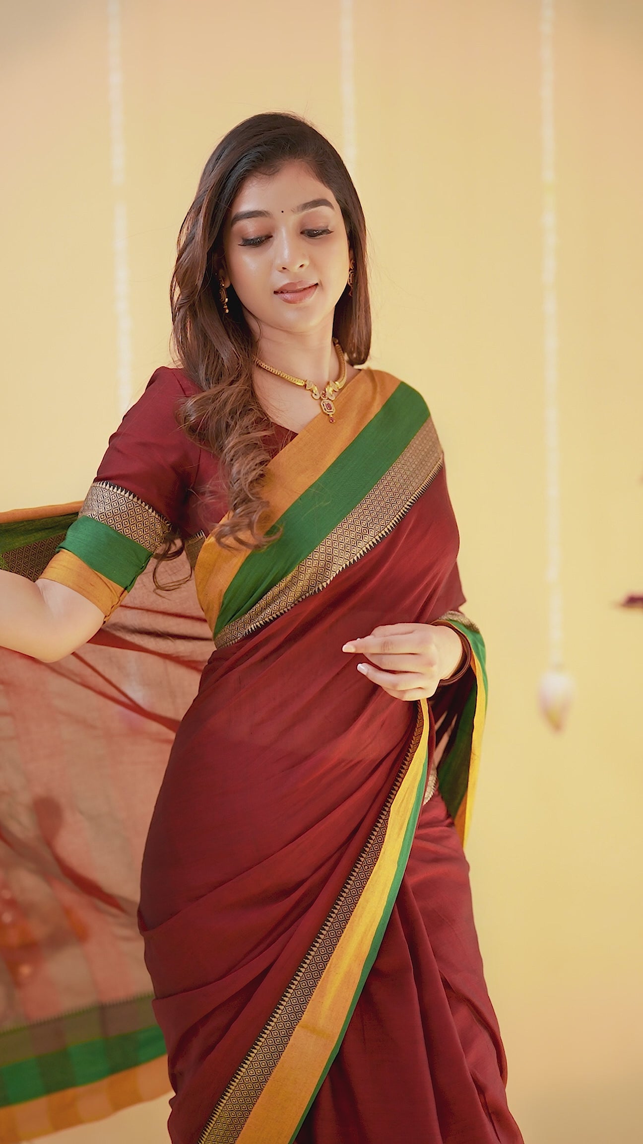 Narayanpet Handloom Saree, crafted in fine cotton and enhanced with a lustrous mercerized finish. Woven by skilled artisans of Narayanpet, this saree reflects a legacy of tradition blended with modern refinement.