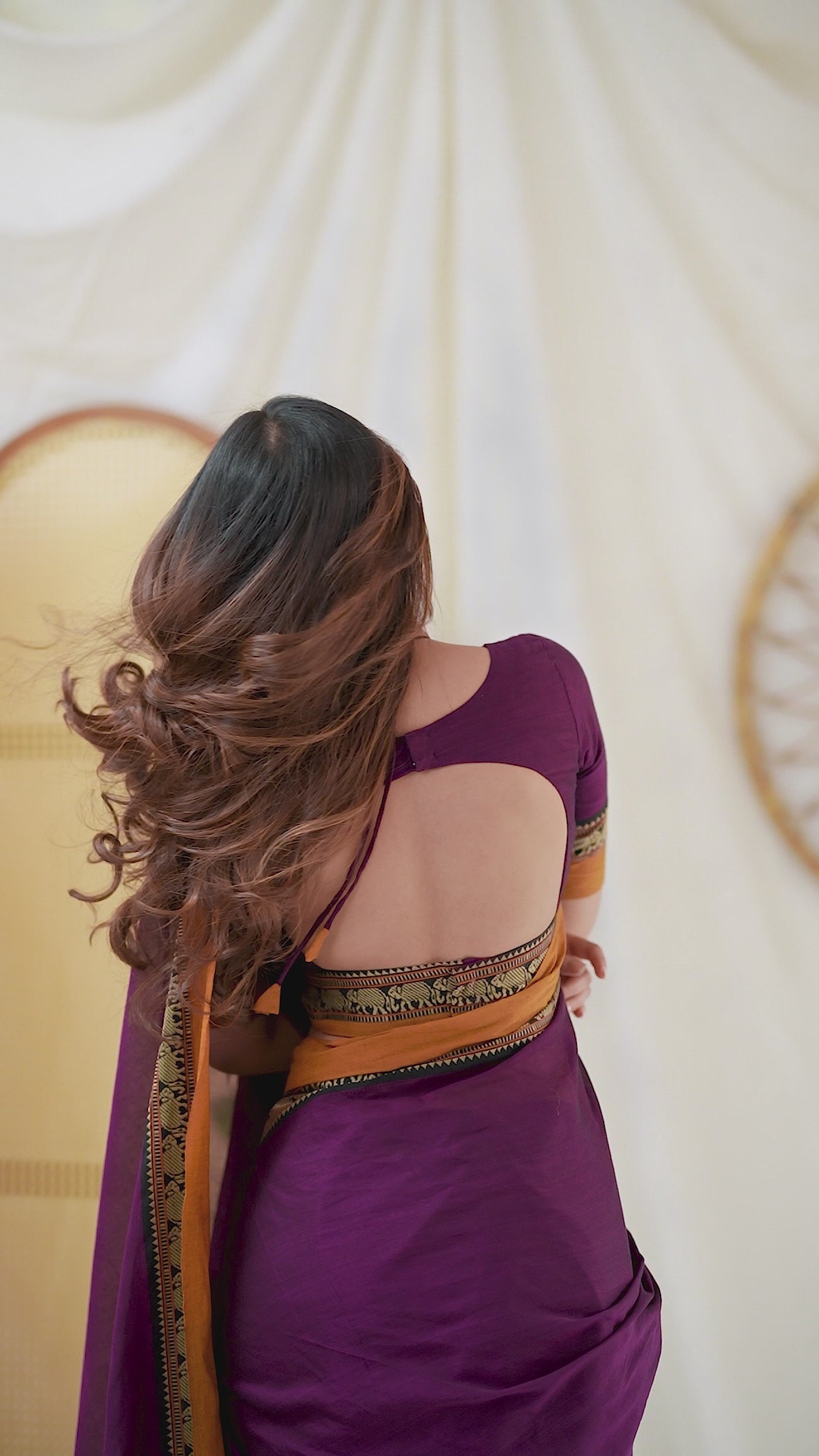 Narayanpet Handloom Saree, crafted in fine cotton and enhanced with a lustrous mercerized finish. Woven by skilled artisans of Narayanpet, this saree reflects a legacy of tradition blended with modern refinement.