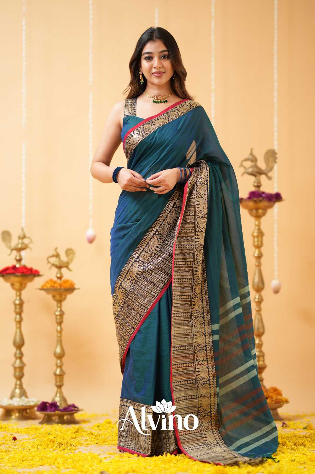 Narayanpet Handloom Saree, crafted in fine cotton and enhanced with a lustrous mercerized finish. Woven by skilled artisans of Narayanpet, this saree reflects a legacy of tradition blended with modern refinement.